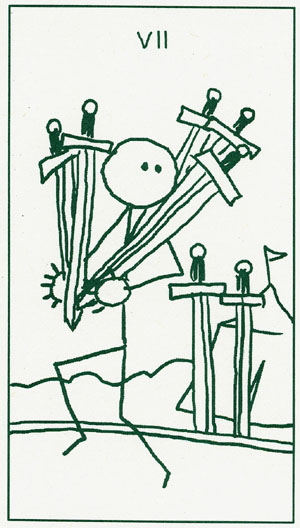 The 7 of Swords is about making slow progress because you can't trust the situation and/or people around you.
