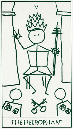 The Hierophant carries the number 5. This is the number connected to humans. 5 senses, 5 limbs (including the head), 5 fingers on a hand, 5 toes on a foot.