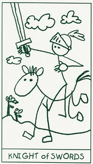 The Knight of Swords lacks the naivety of the Knight of Wands, he has analyzed the terrain ahead and weighed his options there. He knows what his own nature can throw into the mix, but does not let himself be held idle by that. The activities ahead will likely include the solving of conflicts and problems on your road to your ideal.
