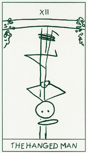 First you learned that you're not a plaything of fate, that you can make your own choices. Then you've learned how to fend for yourself and face yourself. Now, at The Hanged Man, you can learn to let go. You no longer have to cling to old values. You've found strength in yourself and by letting go, you allow growth.