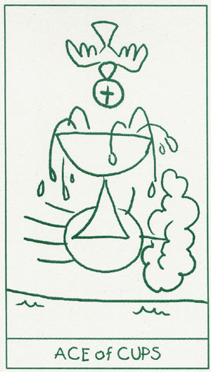 The Ace of Cups represents openness to your ideals. From all the ideas that you evaluated during the walk with Wands, you now have found the one you find valuable to invest your time and energy in.