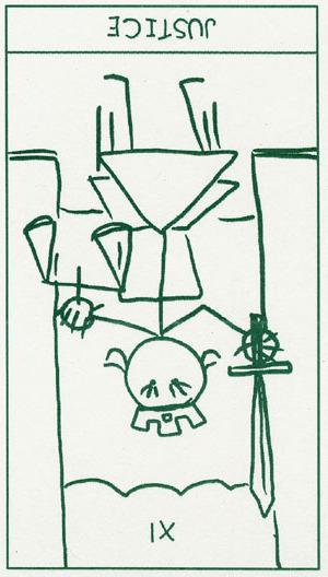 This card carries the number 11. In the Rider-Waite deck, Strength and Justice have swapped places because Waite saw links with the astrological signs Leo and Libra.