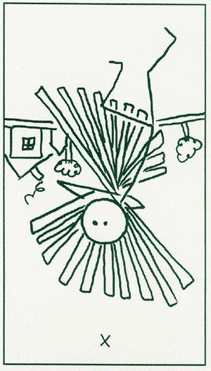 The 10 in the small arcana, any of the Wands, Cups, Swords or Coins cards, is the number that connects to the Ace of the next element.