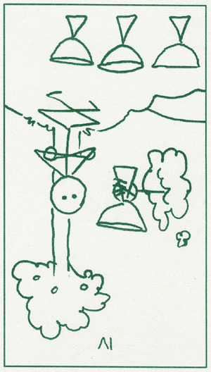 With the 4, the second cycle of this suit is commenced, where a choice between structure and feeling has to be made, where old securities have to be let go of to work towards a new future. But like Wands, Cups don't like structure much, they prefer to be free and dream rather than to make commitments and go for something.