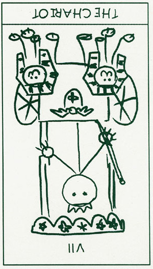 During the prevous card, The Lovers, all the wisdom of the first cards in the deck has been processed and a choice was made for personal growth. Now it's time to do something with all this baggage, to actually travel the road. A lot has been done so far, wisdoms have been accumulated and integrated into one's personality.