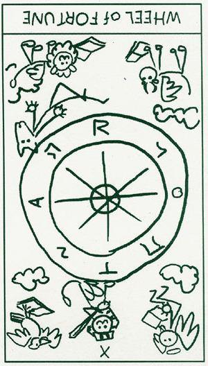 With the Wheel of Fortune, the second major cycle of Tarot commences. The first cycle in the first cards of the deck was about development as a child, accumulating wisdoms and integrating them into your personality. This second cycle is about your development as an adult. It is a more demanding cycle. You'll have to see if you can face what the world throws at you.