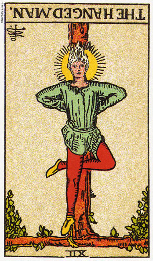 First you learned that you're not a plaything of fate, that you can make your own choices. Then you've learned how to fend for yourself and face yourself. Now, at The Hanged Man, you can learn to let go. You no longer have to cling to old values. You've found strength in yourself and by letting go, you allow growth.