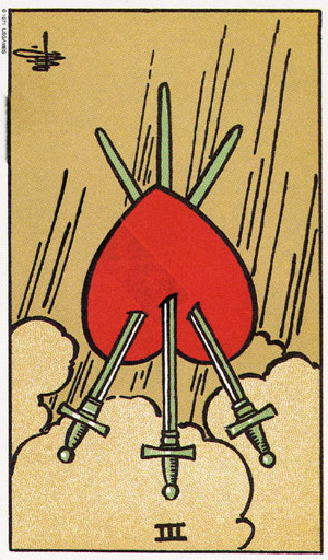 The 3 of Swords is about assertiveness.