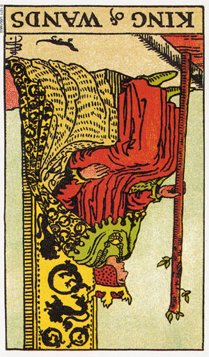 The King of Wands uses the properties of Wands (vitality, optimism, enthousiasm) to go out with confidence. He is seen as a leader with charisma.