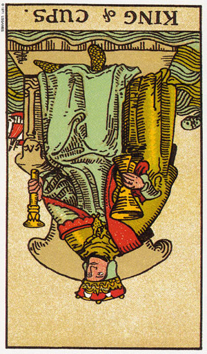 The King of Cups uses his intuition to achieve his ideals. Since Cups are turned inward, and Kings turned to the outside world, this card might be a difficult one, or it could be a powerful one.