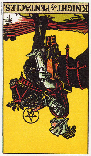The Knight of Pentacles doesn't like to get worked up about anything. He prefers to make quiet steady progress by sticking to a persevering attitude, while not allowing himself to become exhausted or stressed.