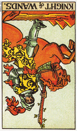 The Knight of Wands likes action and progress, but isn't too concerned with the usefulness of his actions or the ramifications to those around him.