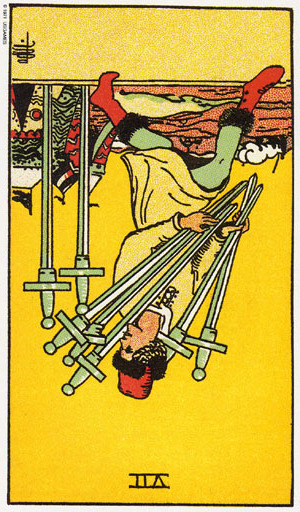 The 7 of Swords is about making slow progress because you can't trust the situation and/or people around you.