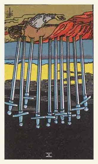 The 10 of Swords is about saying final goodbye to things or people that are bad to you.