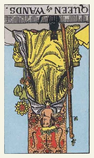 The Queen of Wands is drawn when you (have to) become more aware of the properties of the Wands suit; vitality, optimism and enthousiasm.