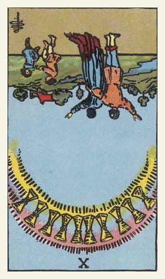 The 10 of Cups is the link to the Swords suit. It is time to leave your own emotions behind and face the world and the tasks ahead.