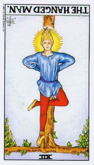 First you learned that you're not a plaything of fate, that you can make your own choices. Then you've learned how to fend for yourself and face yourself. Now, at The Hanged Man, you can learn to let go. You no longer have to cling to old values. You've found strength in yourself and by letting go, you allow growth.