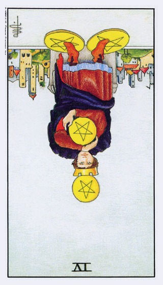 The 4 of Pentacles is about holding on to what you got. The number 4 represents structure and order, and fits well with the suit's element, Earth.