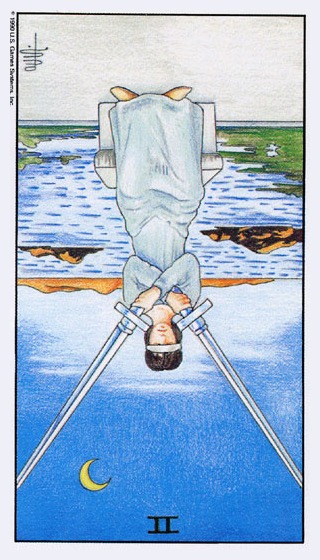 The 2 is an assignment number in tarot, and in this case of the 2 of Swords, it's about being forced to wait for something, often even while blindfolded in some sense.