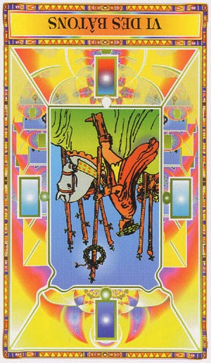 The 6 of Wands represents victory (over yourself maybe). 6 is the number that represents the rewards of hard work, which you did in card 5. When a 6 of Wands is in your game, you might be feeling a little proud with your accomplishments. But some modesty might help you shine even better.