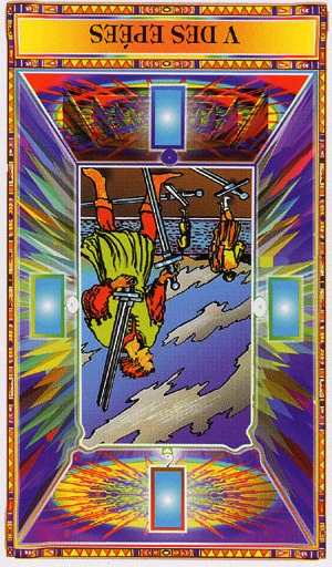 The 5 of Swords is about facing reality. The 5 is an assignment number, and in the slighly more difficult suit of Swords, it means you face a difficult challenge where your past experiences could hold you down.