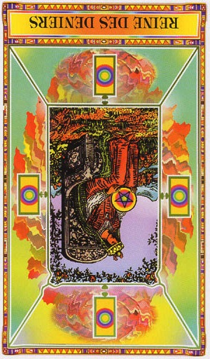 The Queen in the suit of Pentacles becomes aware of her Earthly attributes; she's reliable and sober, able to give good advice.