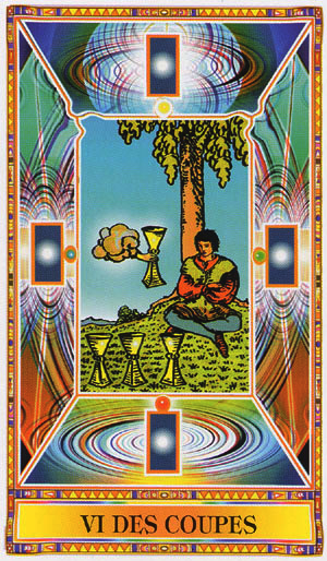 With the 4, the second cycle of this suit is commenced, where a choice between structure and feeling has to be made, where old securities have to be let go of to work towards a new future. But like Wands, Cups don't like structure much, they prefer to be free and dream rather than to make commitments and go for something.