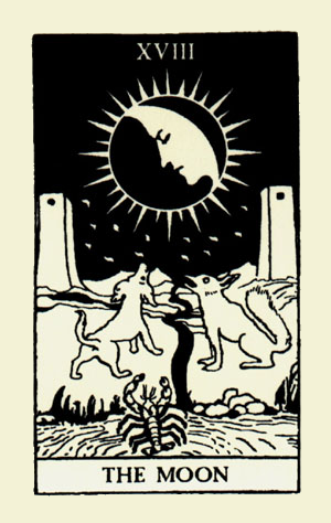 The Hermit, also a 9, closed off the upperworld. The Moon closes the underworld.