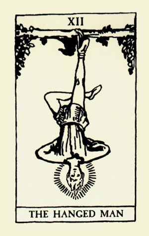 First you learned that you're not a plaything of fate, that you can make your own choices. Then you've learned how to fend for yourself and face yourself. Now, at The Hanged Man, you can learn to let go. You no longer have to cling to old values. You've found strength in yourself and by letting go, you allow growth.