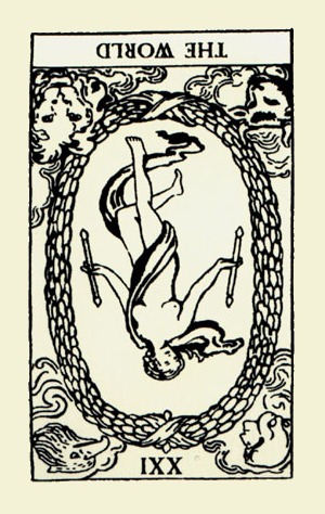 This card falls when you've completed all assignments, overcome all obstacles and are completely at peace with yourself due to your accomplishments. Yet Tarot wouldn't be Tarot if it didn't challenge you to enter entirely new worlds and start the process all over again.