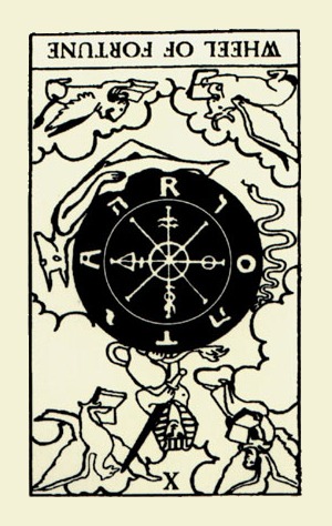 With the Wheel of Fortune, the second major cycle of Tarot commences. The first cycle in the first cards of the deck was about development as a child, accumulating wisdoms and integrating them into your personality. This second cycle is about your development as an adult. It is a more demanding cycle. You'll have to see if you can face what the world throws at you.