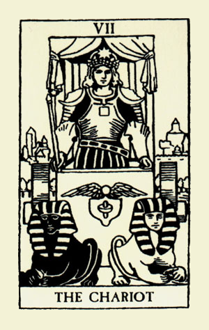 During the prevous card, The Lovers, all the wisdom of the first cards in the deck has been processed and a choice was made for personal growth. Now it's time to do something with all this baggage, to actually travel the road. A lot has been done so far, wisdoms have been accumulated and integrated into one's personality.