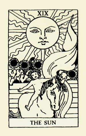 The Sun carries the number 19, a composed value of 1. This is the third composed 1 in the Major Arcana. It's the culmination of the 1's. The third 1 is a reward and a beginning at the same time. It also represents creative energy.